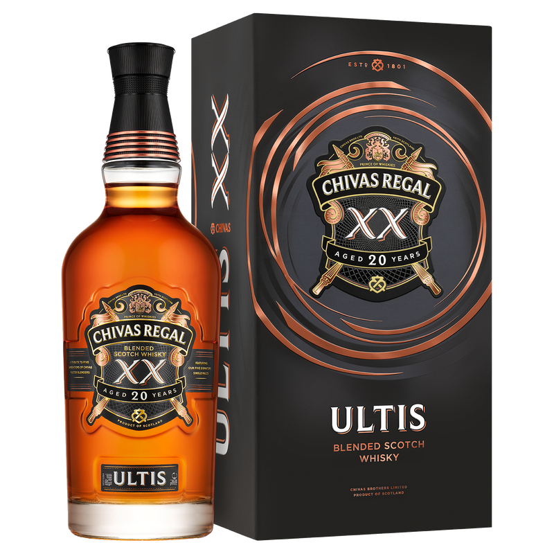 An elegantly smooth and luxurious whisky, created as the ultimate celebration of Chivas craftsmanship. Aged for 20 years, this exceptional blend brings together five of the house's rarest single malts, expertly married with its signature Strathclyde single grain whisky. Crafted by Master Blender Sandy Hyslop in tribute to his five predecessors, this meaningful heritage is reflected in the five copper rings adorning the bottle's neck. Matured in a combination of European and American oak casks, Ultis XX delivers remarkably bold yet refined flavours, with fresh red apples and raspberry jam on the nose, a smooth and sweet palate of blossom honey, milk chocolate and ripe orchard fruits, and a long, sweet, velvety finish. Rich, complex and indulgent, it is a whisky made to mark truly special occasions.